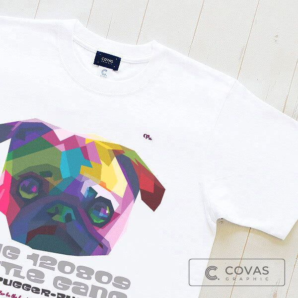 コミカルで困ったような表情が愛くるしいパグをデザイン。